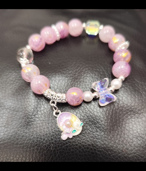 *The colour of the item may slightly vary from picture due to light effect during photo shoot.Beautiful Purple beads bracelet with charms.