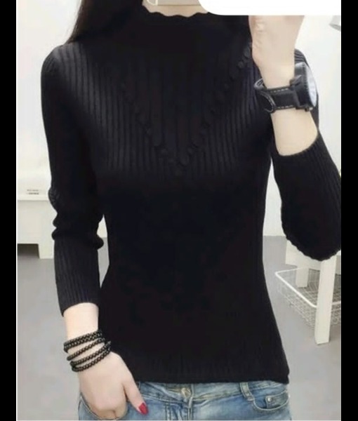 *The colour of the item may slightly vary from picture due to light effect during photo shoot.Black winter sweater top with neck design