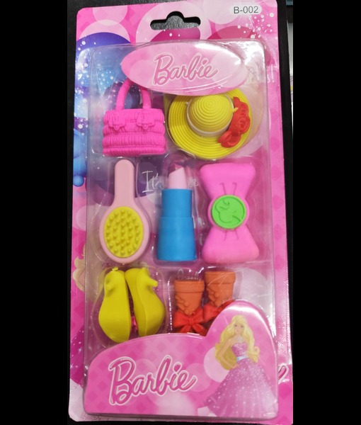 *The colour of the item may slightly vary from picture due to light effect during photo shoot.Cute 3D Barbie eraser set of 7.