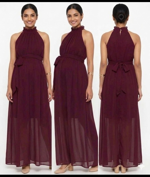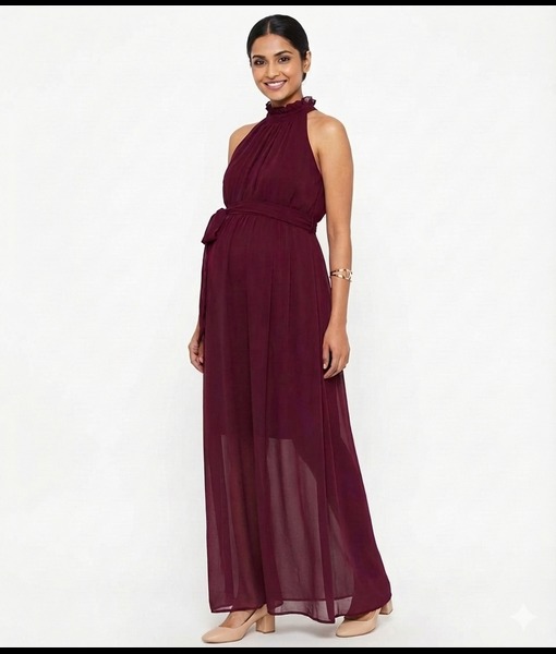 Dark Purple maternity party wear dress, maternity photo shoot dress, Dark Purple floor length georgette sleeveless dress.