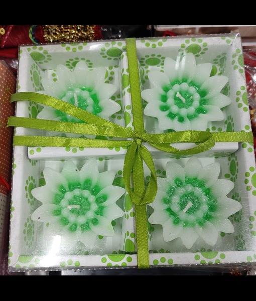 *The colour of the item may slightly vary from picture due to light effect during photo shoot.Green Flower floating candles set of 4.