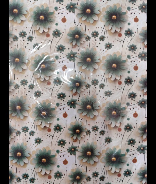 *The colour of the item may slightly vary from picture due to light effect during photo shoot.Green flower print paper gift wrapping sheet.