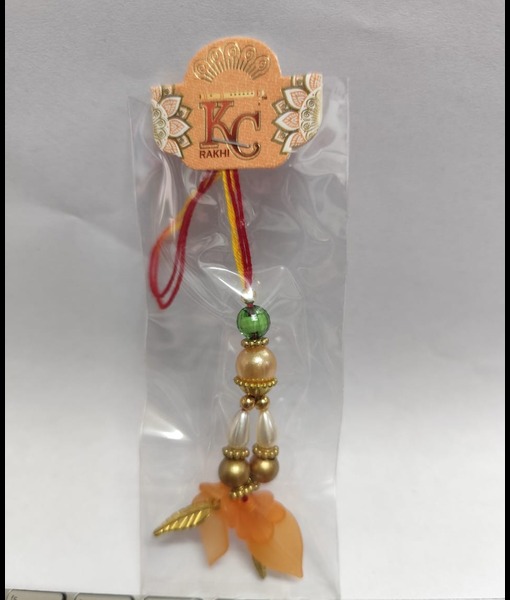 *The colour of the item may slightly vary from picture due to light effect during photo shoot.Orange petal lumba rakhi.