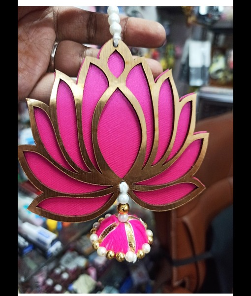 *The colour of the item may slightly vary from picture due to light effect during photo shoot.Pink Lotus cut out with Jhumka hanging for Diwali home decoration.