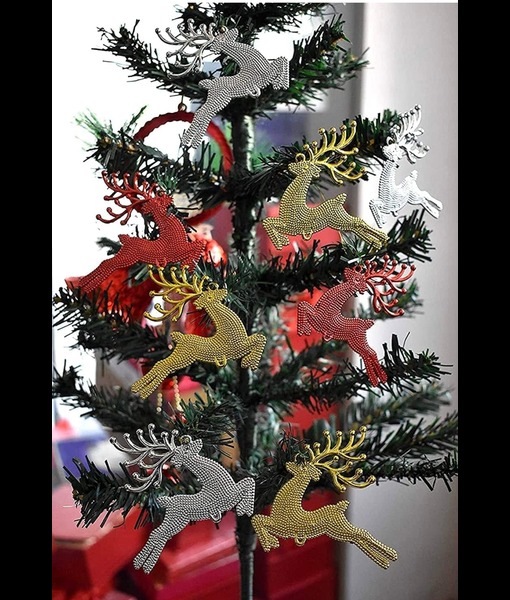 *The colour of the item may slightly vary from picture due to light effect during photo shoot.Raindeer Xmas decoration Christmas tree hangings set of 6