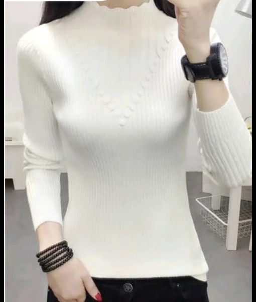 *The colour of the item may slightly vary from picture due to light effect during photo shoot.White winter sweater top with neck design